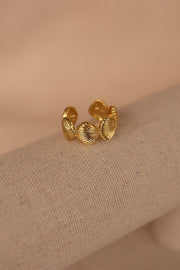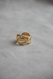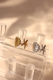 Anillo ajustable de acero inoxidable con conchas de mar.