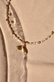 Collar perlas de río con cola de sirena en chapa de oro