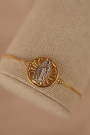 Pulsera ajustable chapa de oro virgen de Guadalupe bicolor.