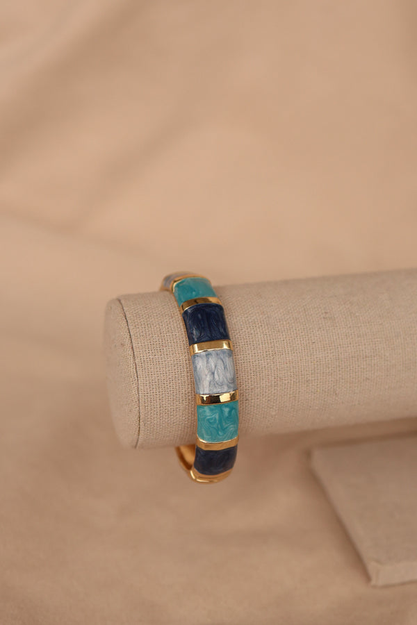 Brazalete chapa de oro con esmaltado azul