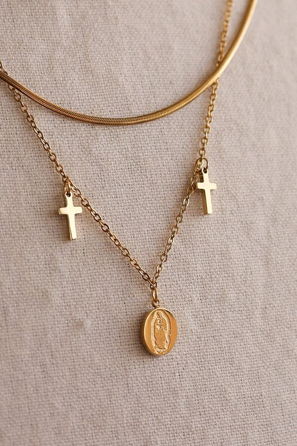 Collar doble con virgen de acero inoxidable.