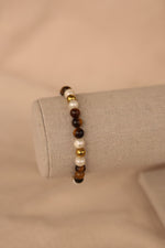 Pulsera acero inoxidable con perla de rio y ojo de tigre